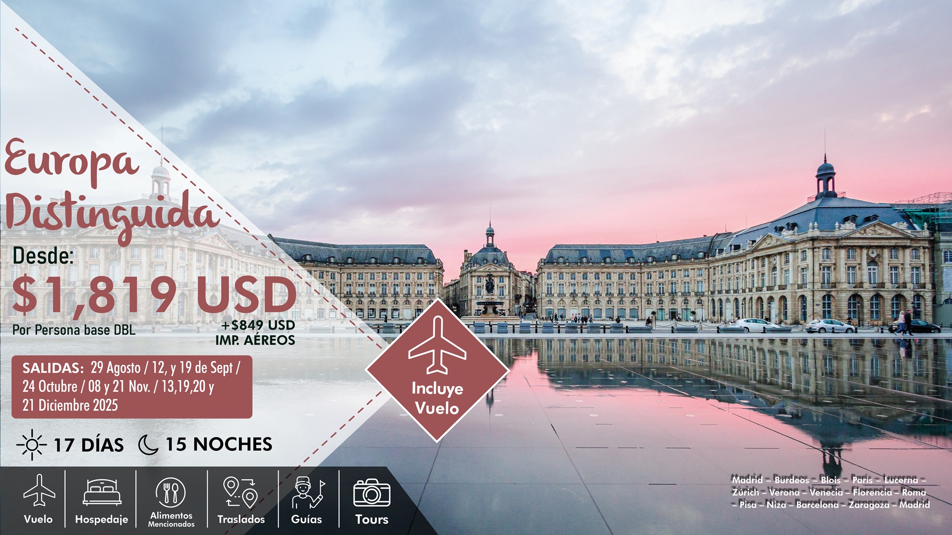 Desayuno. Salida con destino a Pisa. Ciudad identificada por su Torre Inclinada, acompañada del bello conjunto arquitectónico compuesto por la Catedral y el Baptisterio. Después del tiempo libre continuaremos nuestra ruta y, pasando por Génova, recorreremos la Riviera italiana para llegar a la frontera con Francia y poco después a Niza, capital de la Costa Azul. Por la noche organizaremos la excursión opcional al mundialmente conocido Principado de Mónaco, donde la elegancia, la arquitectura y la iluminación se reúnen. Tiempo libre para visitar el Casino de Montecarlo. Alojamiento.