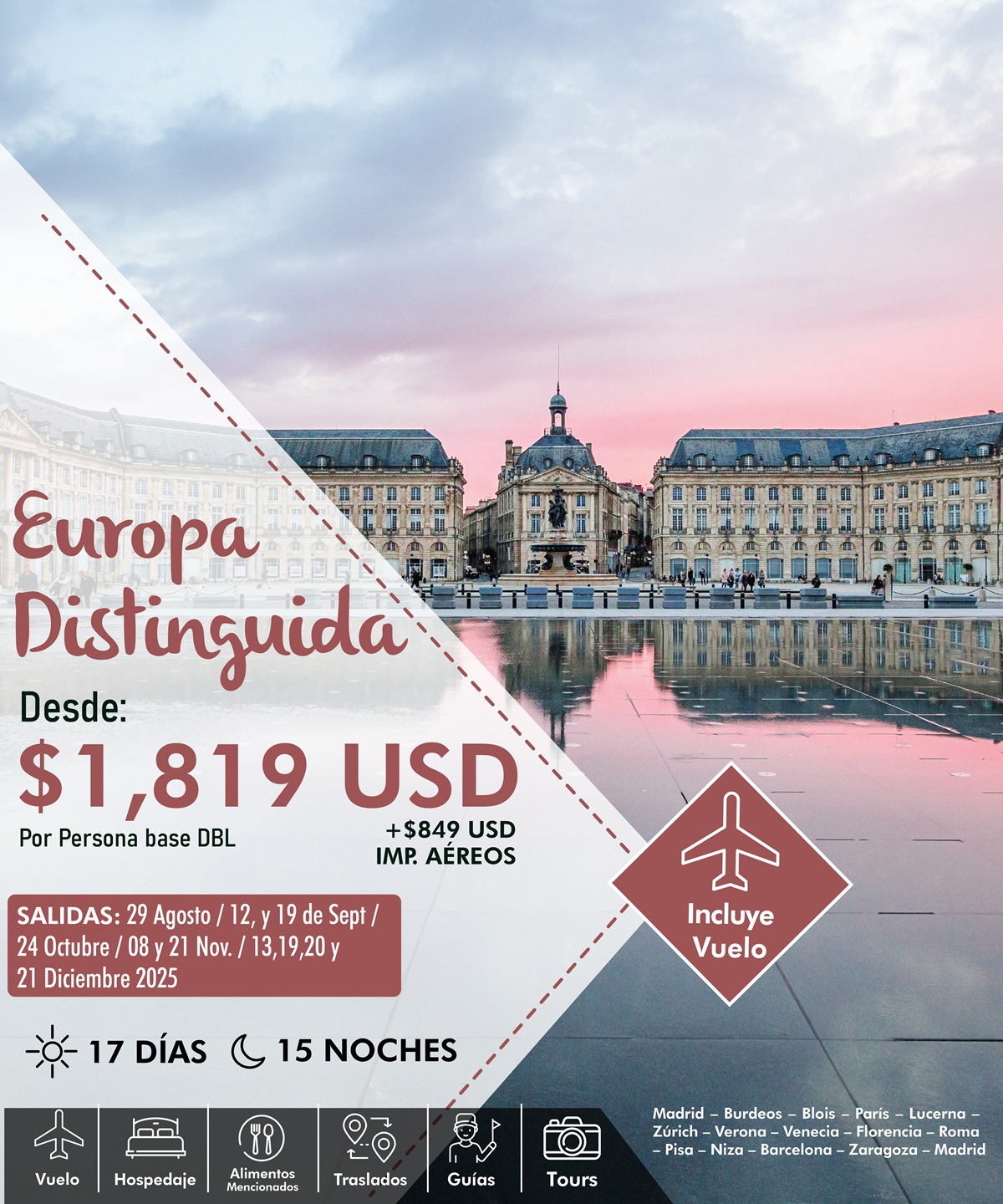 Desayuno (si el tiempo lo permite). A la hora indicada por el guía, se dará el traslado al aeropuerto internacional Adolfo Suárez Madrid-Barajas para abordar el vuelo con destino a la ciudad de México.