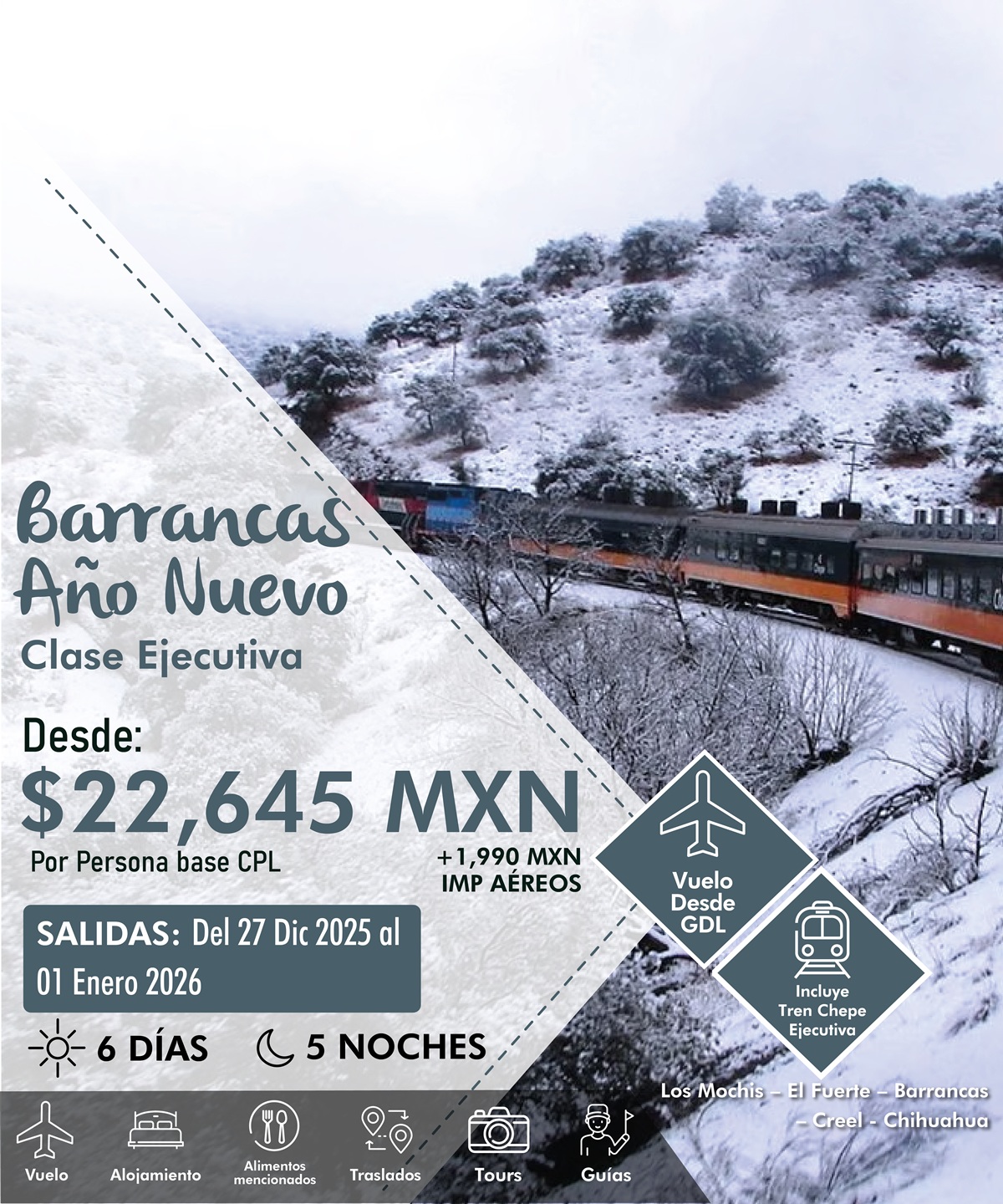 ✓ Tren chepe Express El Fuerte - Divisadero CAT. EJECUTIVA. **Se permite solo UNA MALETA MEDIANA (38cm x 25cm x 65 cm) POR PERSONA SIN COSTO EN EL TREN CHEPE** FAVOR DE CONSIDERARLO