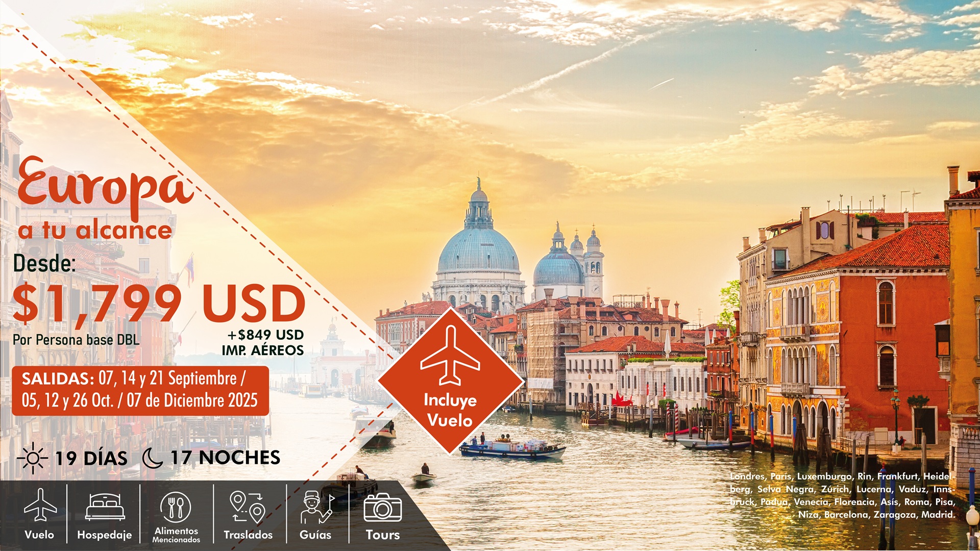 Desayuno y salida hacia la ciudad de Innsbruck donde disfrutaremos de tiempo libre, para conocer el Tejadito de Oro, María Theresien Strasse, la Columna de Santa Ana, etc. A continuación, salida hacia la frontera con Italia, llegaremos a la romántica y medieval ciudad de Verona inmortalizada por la historia de Romeo y Julieta. Tiempo libre para dar un paseo y llegar hasta la Casa de Julieta. Posibilidad de realizar la visita opcional de la ciudad. Más tarde, continuación a Venecia. Llegada y alojamiento.