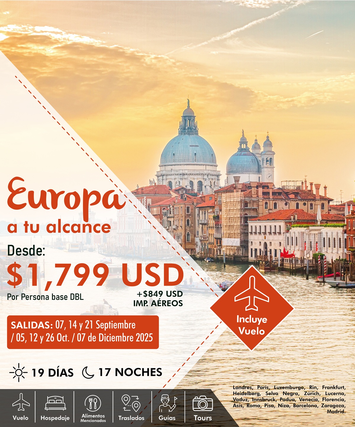 ✓ Boleto de avión México – Londres / Madrid – México volando en clase turista.
