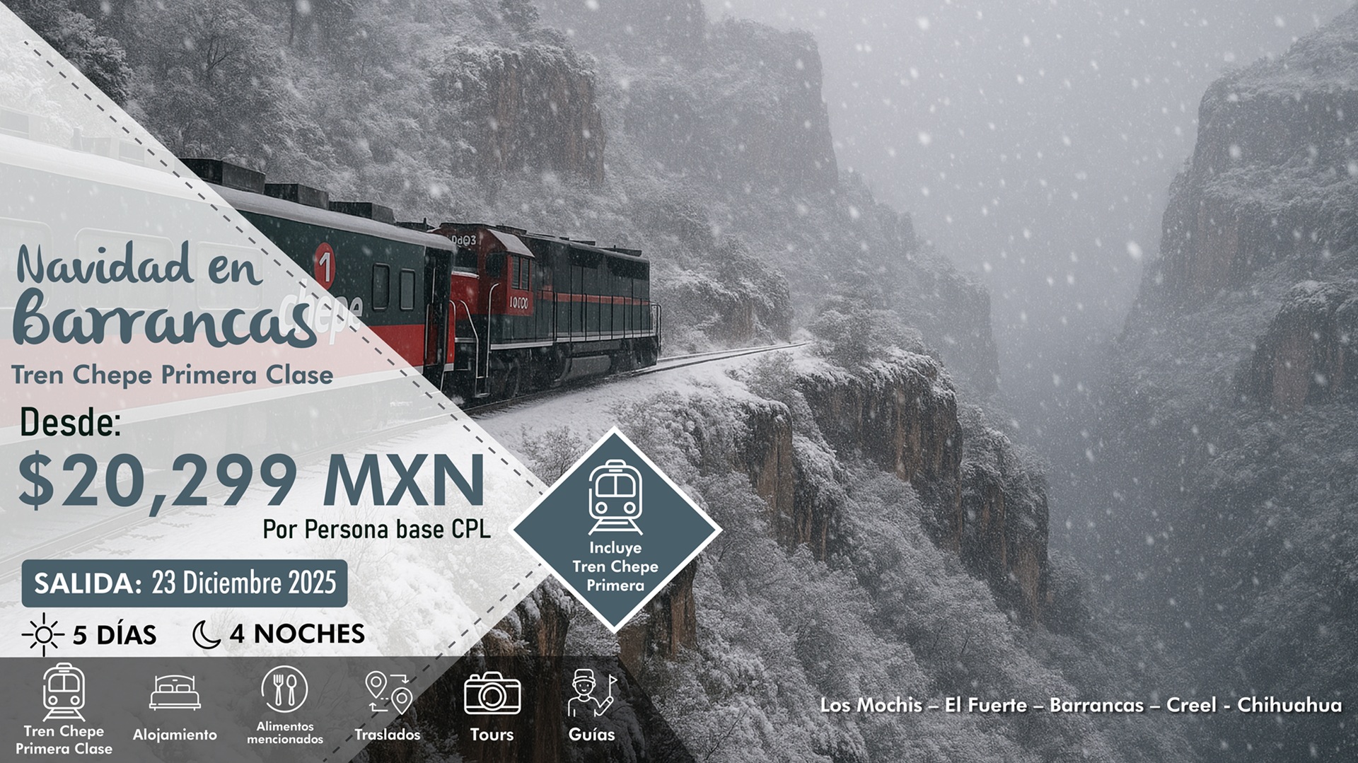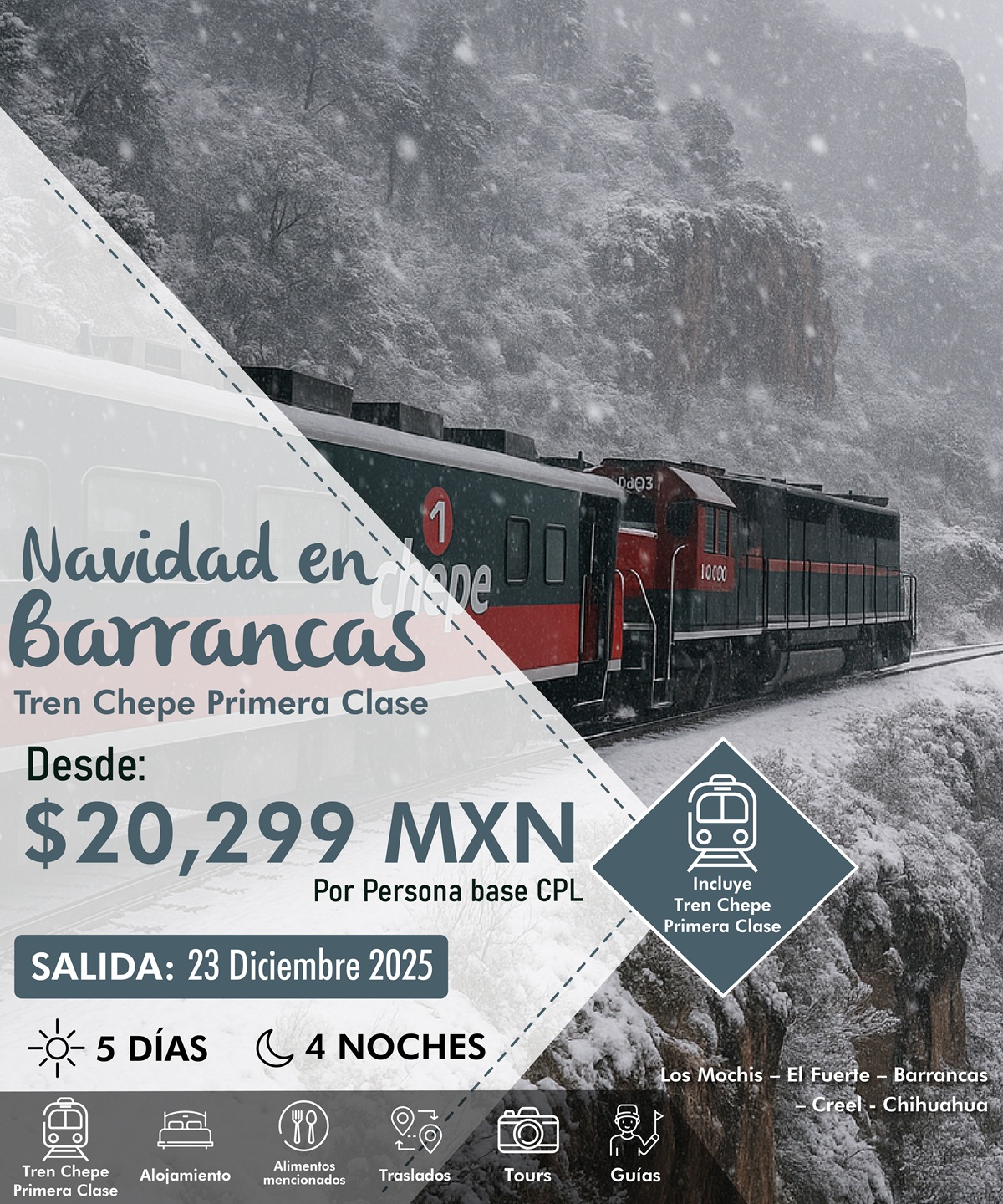 ✓ Tren chepe EXPRESS Divisadero – El Fuerte Cat. PRIMERA CLASE