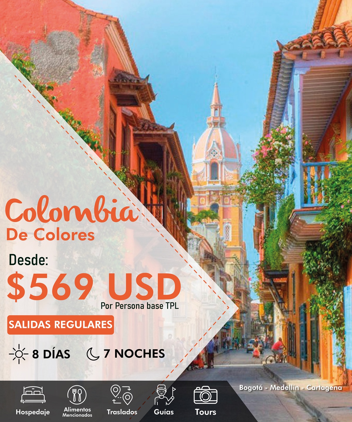 DÍA 8 CARTAGENA | * Desayuno y traslado al aeropuerto Internacional Rafael Núñez (CTG) para tomar vuelo con destino a la ciudad de origen. |