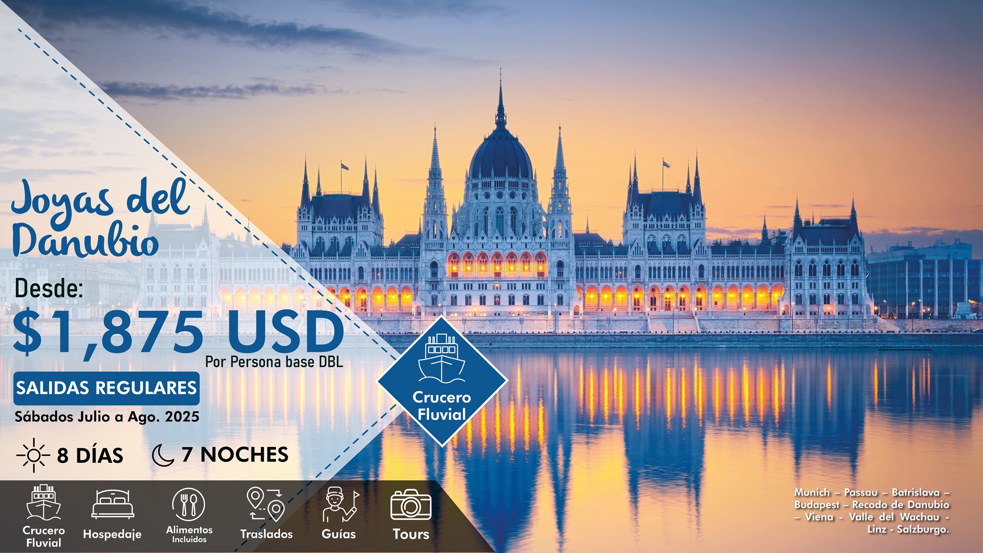 DÍA 1 MUNICH – PASSAU | * Nuestro equipo TUI en destino le esperará en el aeropuerto de Múnich para acompañarle a nuestro barco MS RIVER SAPPHIRE. * Paralelos al rio Danubio nos dirigiremos hasta el centro de la ciudad de Passau, donde esta atracado nuestro barco. * Copa de bienvenida con el capitán y presentación de la tripulación. * Cena y Alojamiento. Noche de navegación. |
