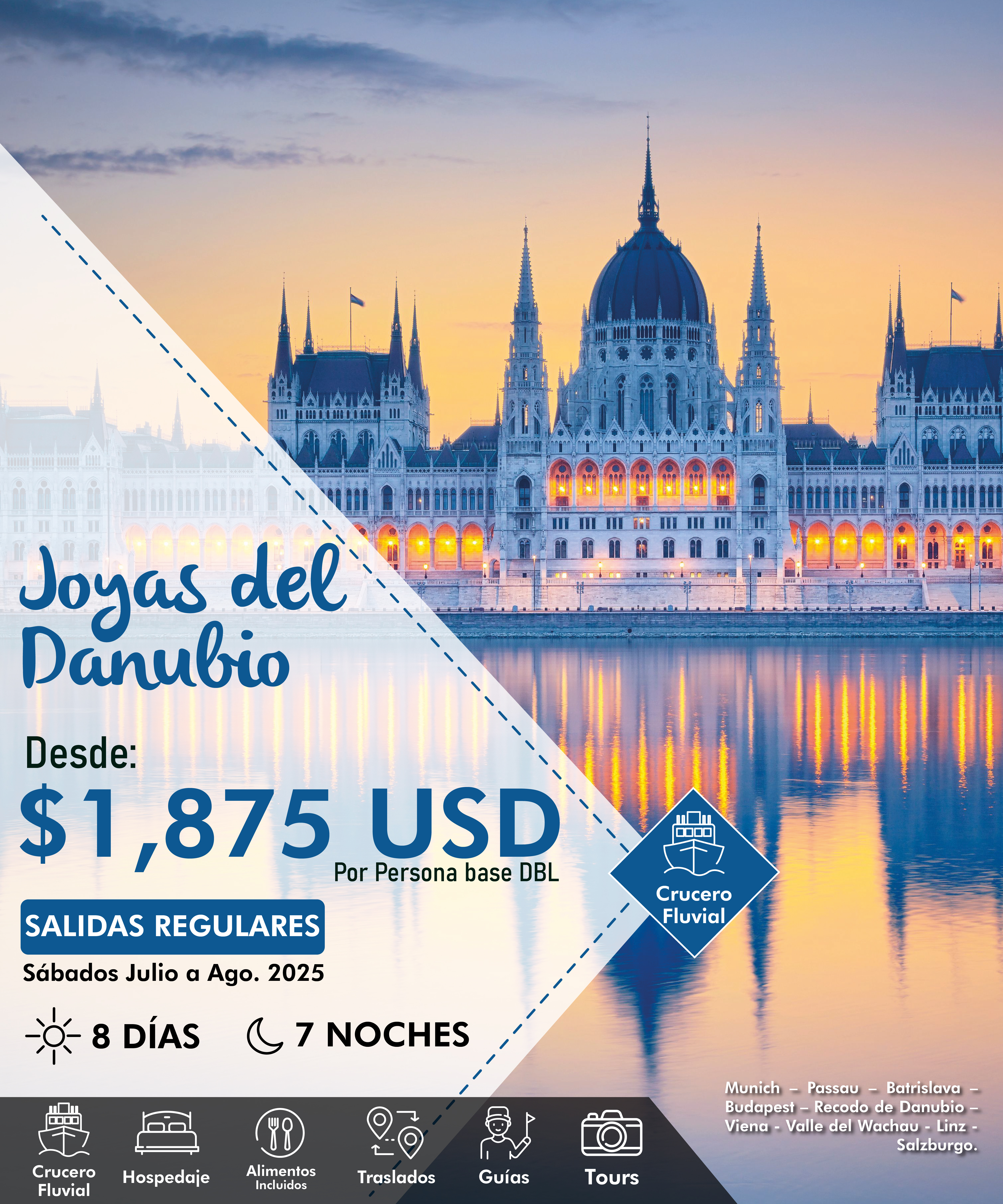 DÍA 2 BRATISLAVA | * Pensión completa a bordo. Mientras disfruta de un magnífico desayuno, navegaremos por las azules aguas del Danubio de frontera entre Austria y Eslovaquia. * Tiempo para relajarse y disfrutar con alguna de las actividades que organiza nuestro equipo de animación a bordo. * Charla de nuestro director de Crucero TUI para presentar el programa y actividades de la semana. * A primera hora de la tarde llegada a Bratislava. Visita panorámica incluida de una ciudad aún muy desconocida. * En nuestro recorrido veremos la ópera Nacional, la Catedral de San Martín, la puerta de San Miguel, el ayuntamiento, el Palacio Arzobispal. * Tarde libre para un último paseo por la ciudad, subir al mirador del Puente Nuevo o realizar alguna compra. Noche de navegación. |