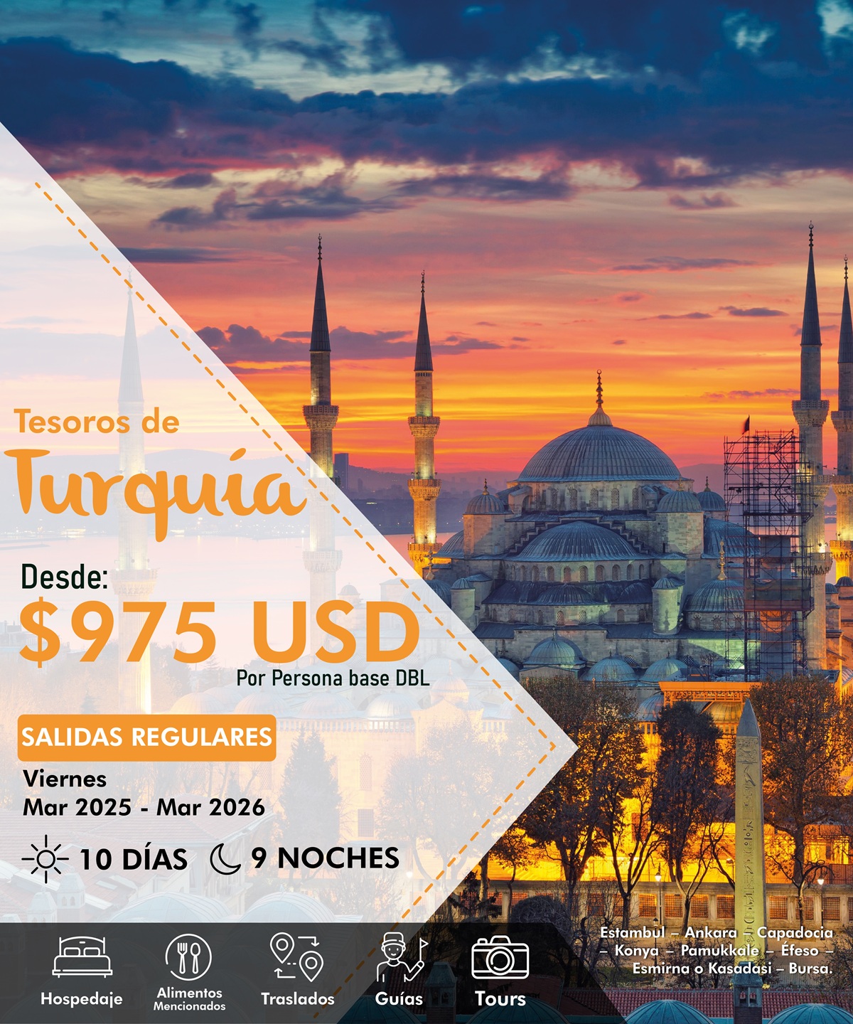 hasta el traslado al aeropuerto de Estambul. Regreso a su país.