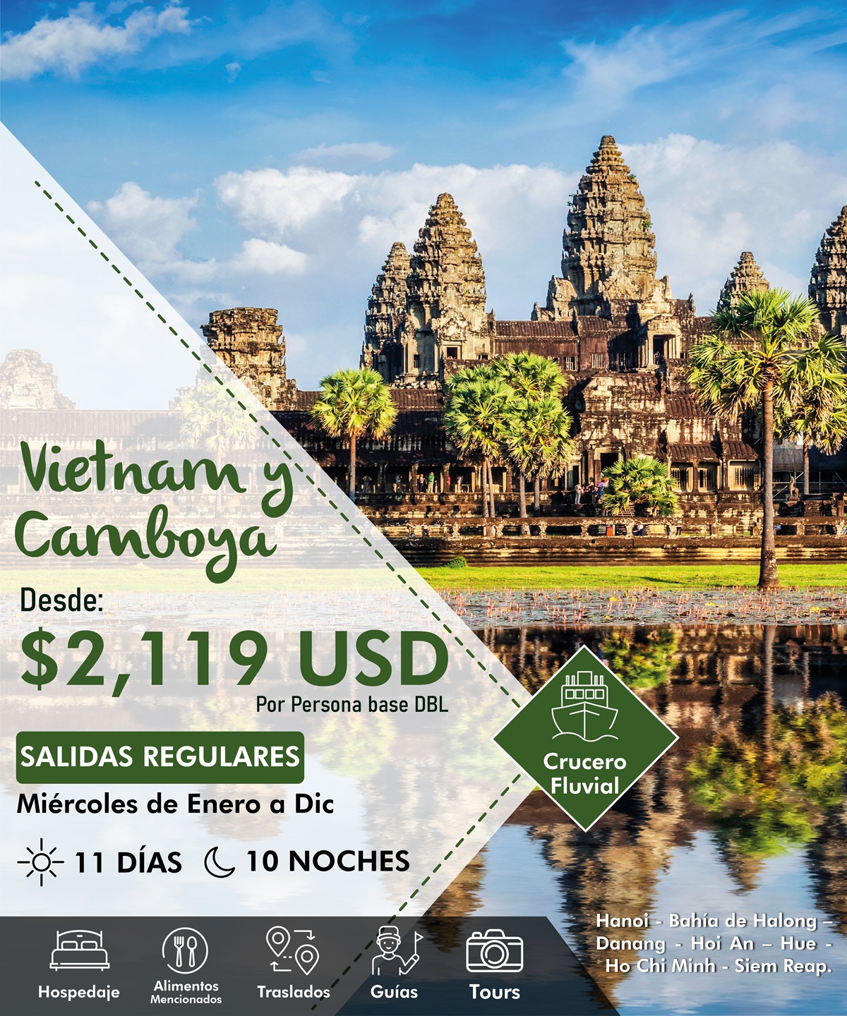 ✓ Guías de habla hispana, excepto en el crucero por la bahía de Halong, donde serán atendidos por la tripulación.