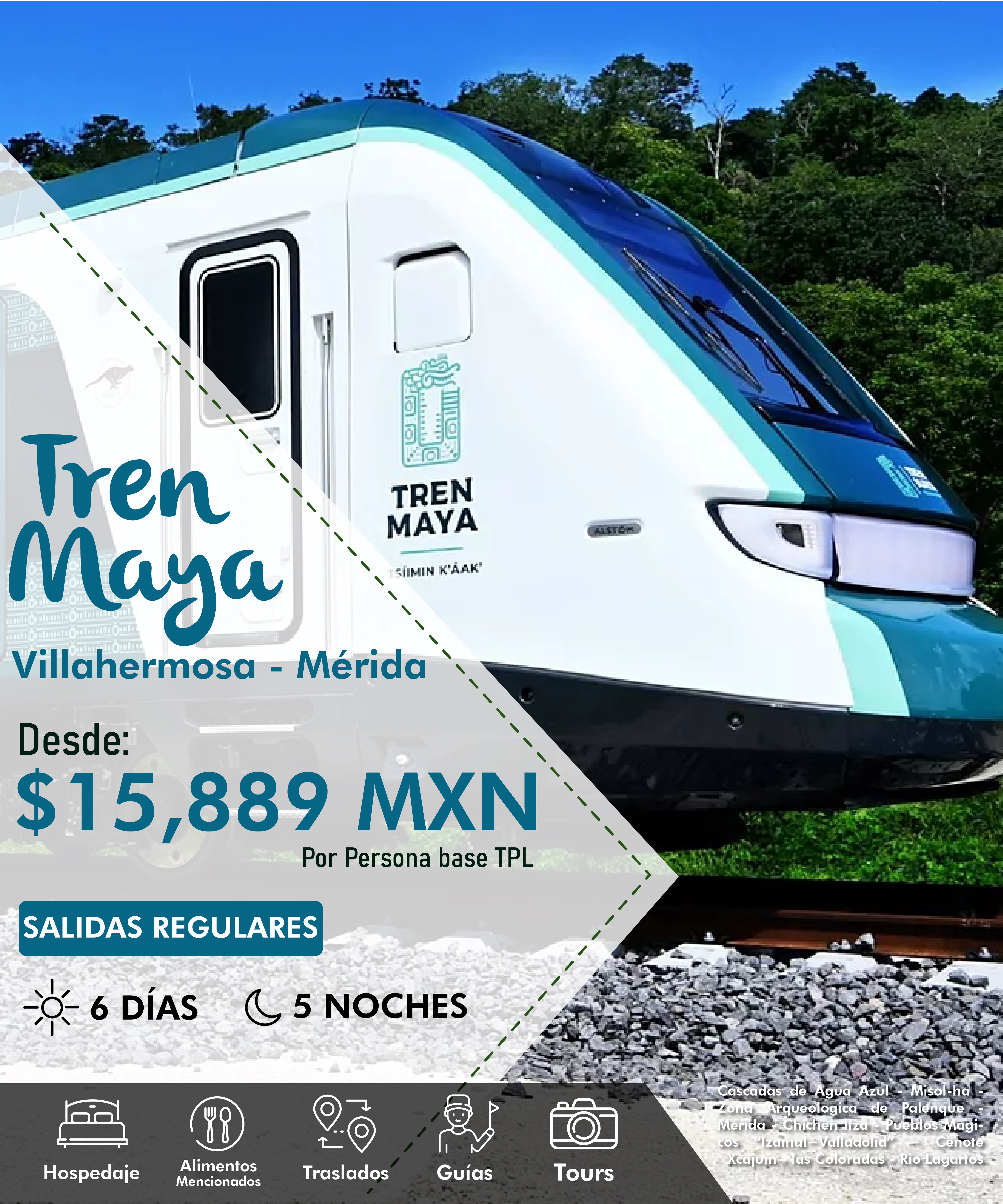 * Boleto de tren maya CHIS-MID Incluido en clase turista.