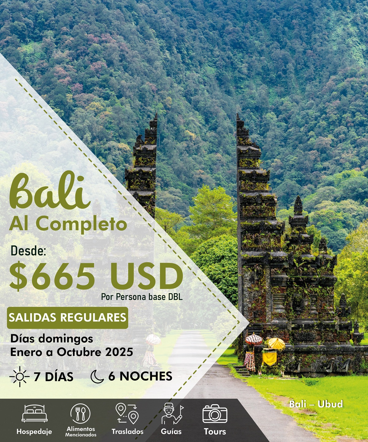* Día libre a su disposición en Ubud, uno de los principales centros artísticos y culturales de Bali.