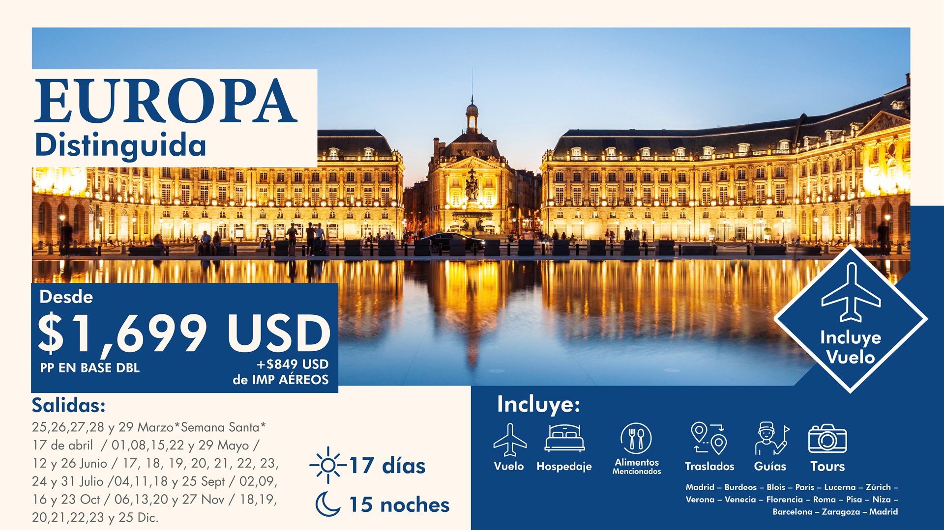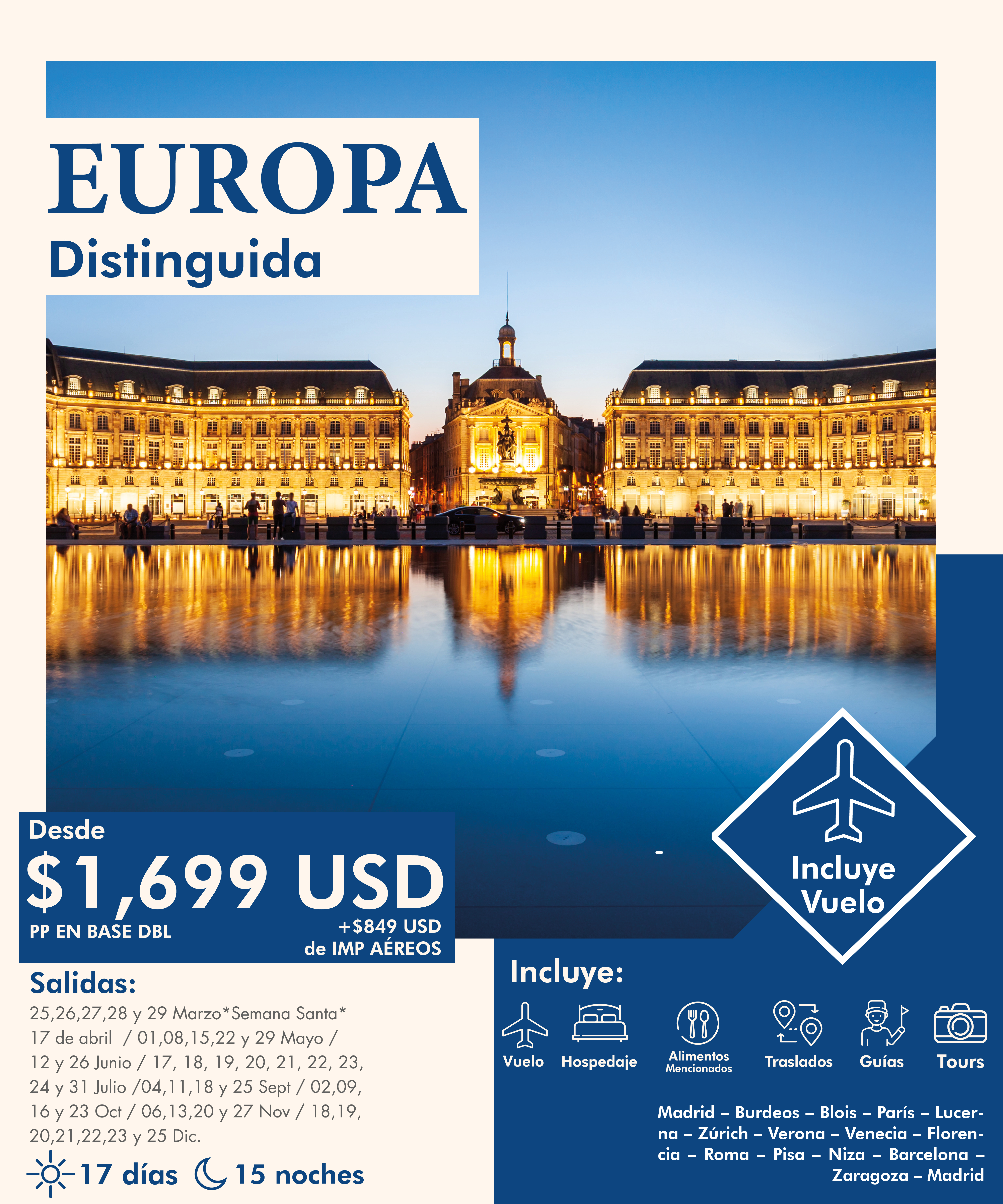 Desayuno. Después saldremos a recorrer la “Ciudad del Amor”, pasando por la Avenida de los Campos Elíseos, la Plaza de la Concordia, el Arco del Triunfo, la Asamblea Nacional, la Ópera, el Museo del Louvre, los Inválidos, el Campo de Marte, la Torre Eiffel, etc. Por la tarde, les propondremos la excursión opcional que nos llevará a Montmartre, emblemático rincón de París, conocido también como el “Barrio de los Pintores” por ser la cuna de los impresionistas. Sus pequeñas y empinadas callejuelas constituyen un entramado que alberga desde los más antiguos cabarets hasta la maravillosa Basílica del Sagrado Corazón de Jesús. A continuación, realizaremos un paseo por el Barrio Latino. Este barrio debe su nombre a la época medieval, cuando los habitantes de la zona eran estudiantes que utilizaban el latín para comunicarse. Tendremos también una vista espectacular de la Catedral de Notre Dame, donde entenderemos el porqué de su importancia mundial. Durante la visita exterior nuestro guía nos explicará sobre lo acontecido y las posibilidades que se abren ante lo que puede ser la mayor obra de restauración del siglo XXI. Alojamiento.