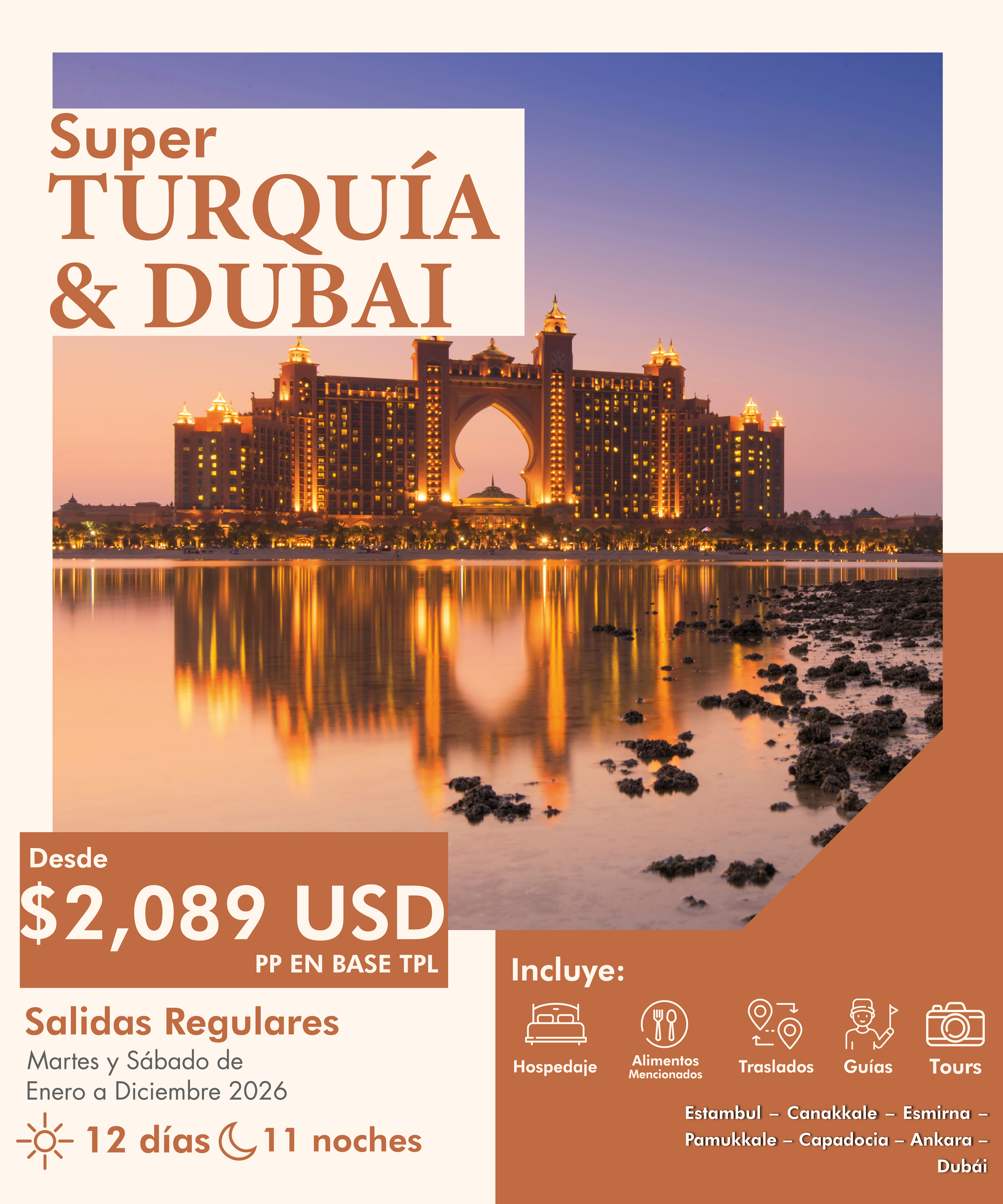 Nota: El traslado por la llegada del vuelo al aeropuerto de Sabiha Gokcen (SAW) tendrá un suplemento.